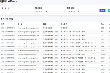 また、生成AIの使い方や活用方法を解説する動画コンテンツを提供し、eラーニングやレクチャーを通じて社内への定着やスキル習得までをサポートします。